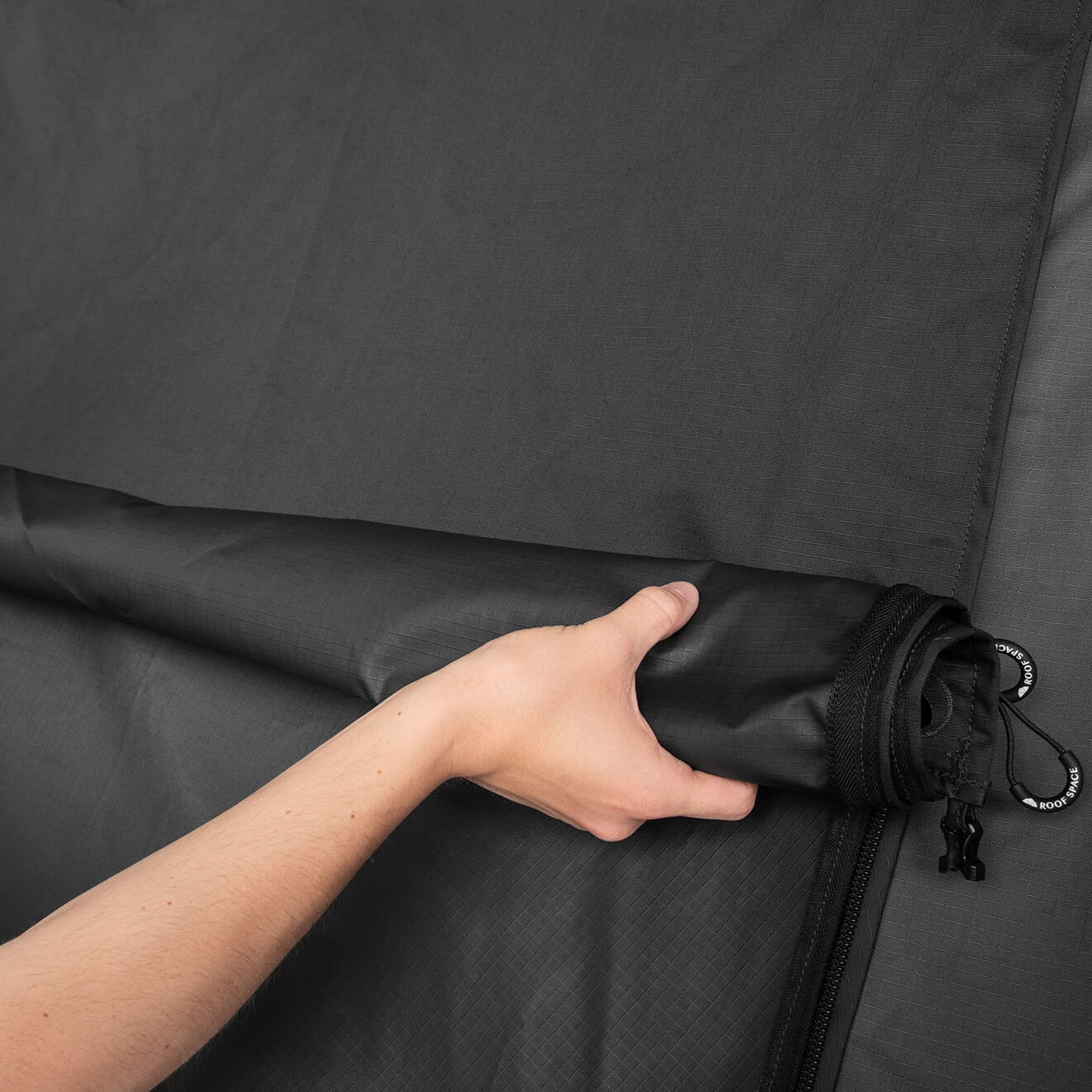 Whether it’s a fantastic view or a hot summer night ? with the mosquito net for the panorama mode of Roof Space 2, you are close to your surroundings, while keeping the insects out. For easy entry and exit from the tent, we’ve sewn an entrance into the panoramic mosquito […]